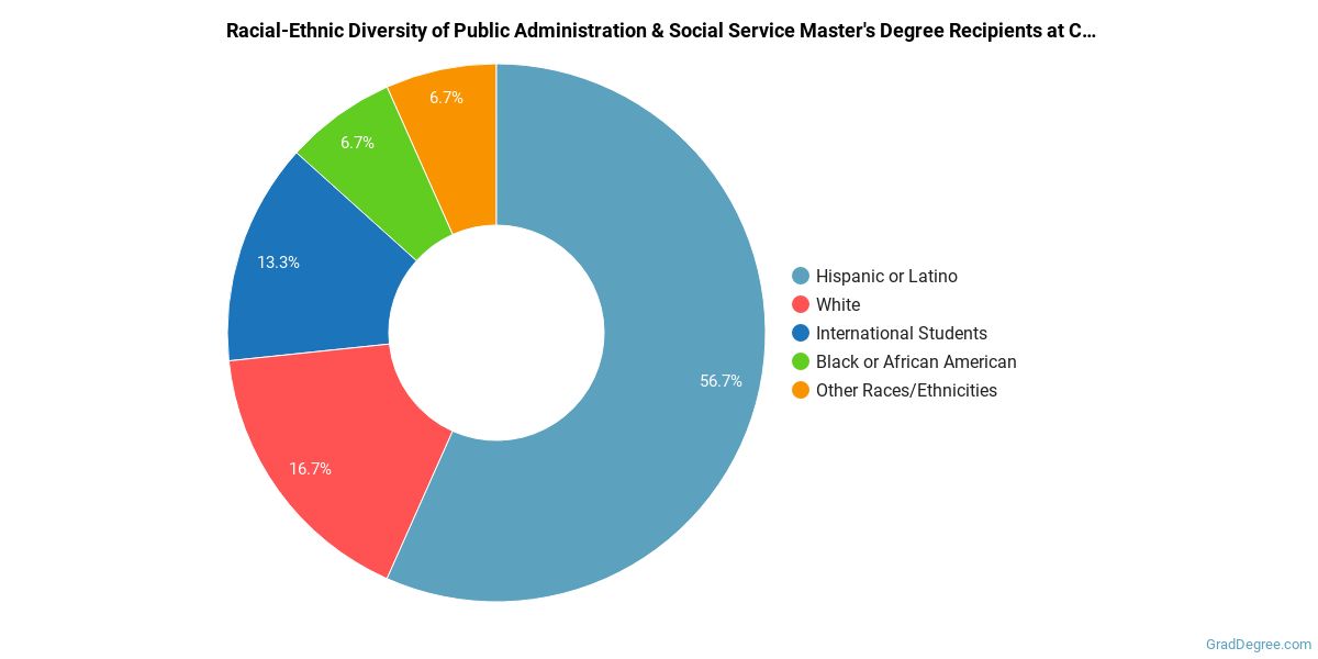 In the public administration and social service master's program at this school, racial-ethnic minorities make up 67% of degree recipients. That is 25% better than the national average.*