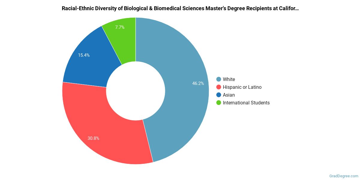 The following table and chart show the race/ethnicity for students who recently graduated from California State University - Bakersfield with a master's in biological and biomedical sciences.