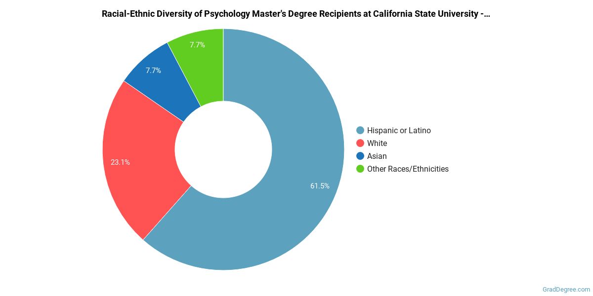 The following table and chart show the race/ethnicity for students who recently graduated from California State University - Bakersfield with a master's in psychology.