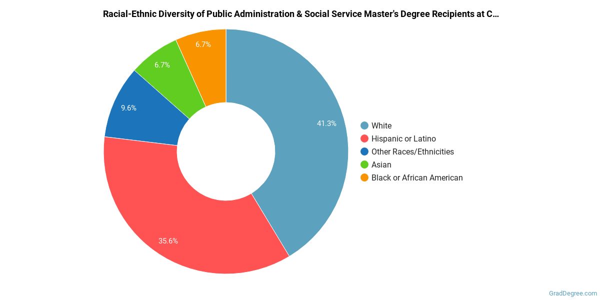 If you plan to study public administration and social service, take a look at what California State University - Chico has to offer and decide if the program is a good match for you. Get started with the following essential facts.Chico State is located in Chico, California and has a total student population of 16,746. During the 2020-2021 academic year, 104 students received their master's degree in public administration and social service.