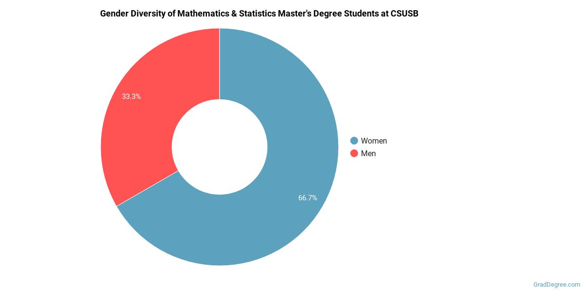 If you are interested in studying mathematics and statistics, you may want to check out the program at California State University - San Bernardino. The following information will help you decide if it is a good fit for you.CSUSB is located in San Bernardino, California and has a total student population of 19,689. During the 2020-2021 academic year, 3 students received their master's degree in mathematics and statistics.