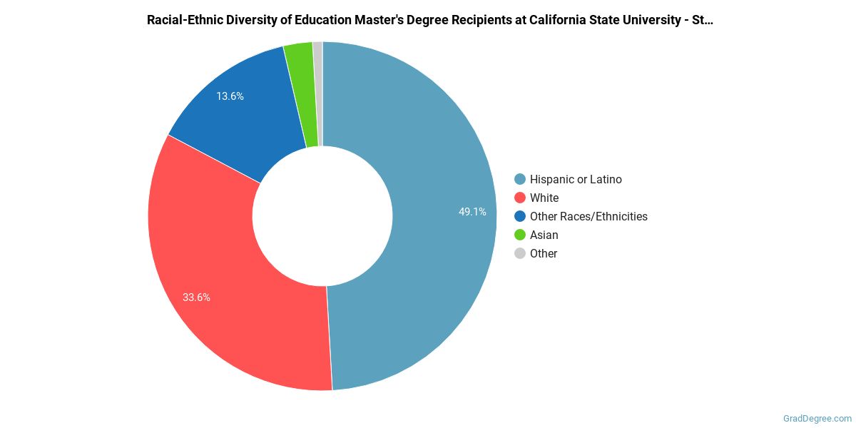 The following table and chart show the race/ethnicity for students who recently graduated from California State University - Stanislaus with a master's in education.