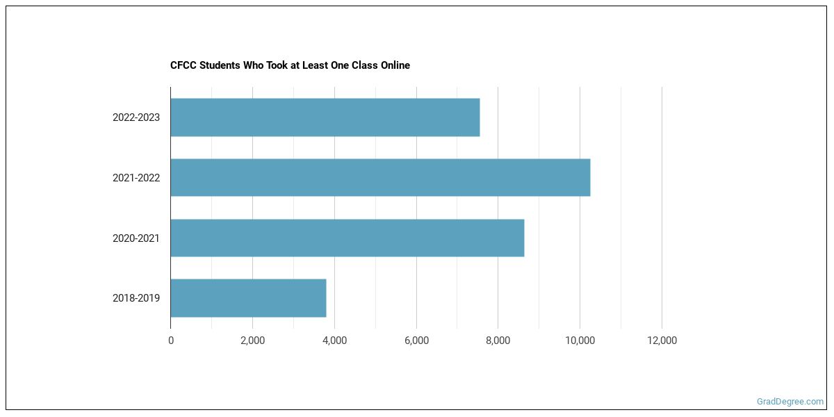 The following chart shows how the online learning population at CFCC has changed over the last few years.