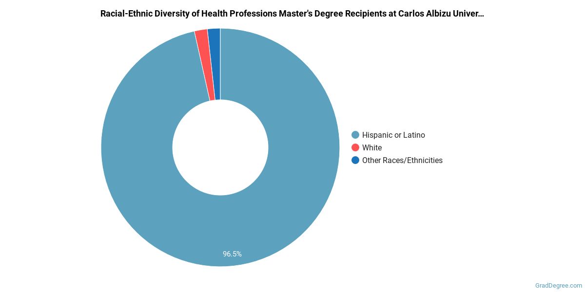 The following table and chart show the race/ethnicity for students who recently graduated from Carlos Albizu University - San Juan with a master's in health professions.