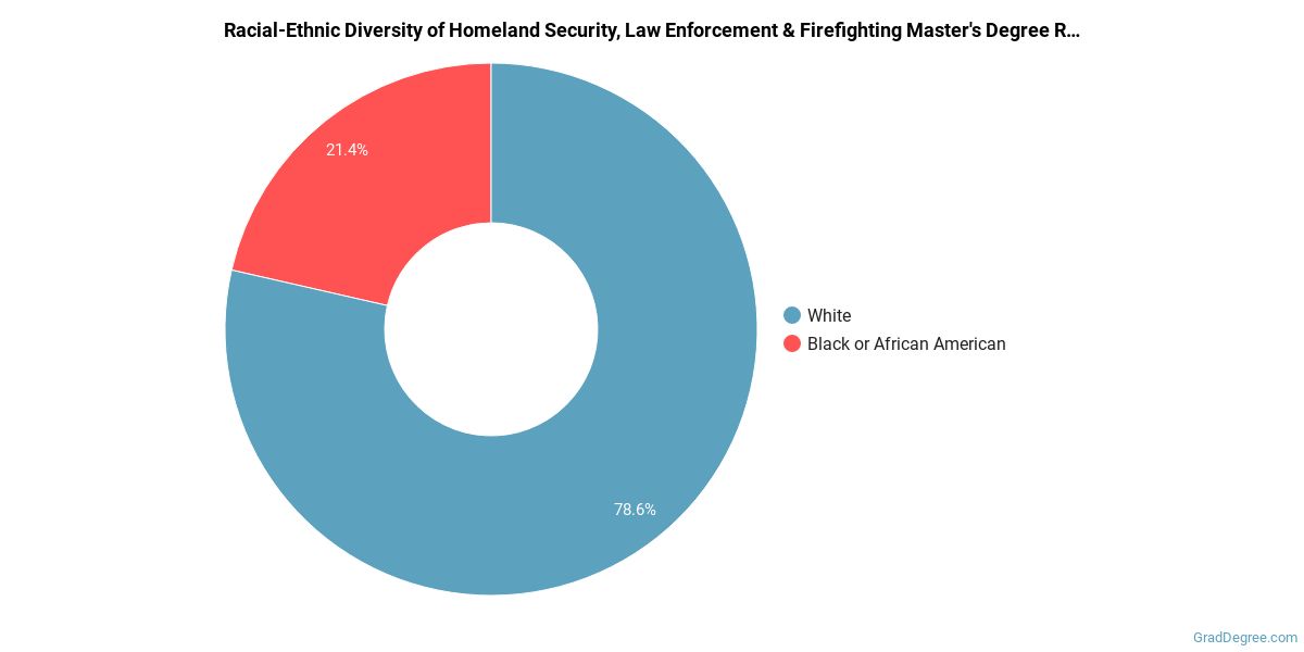The following table and chart show the race/ethnicity for students who recently graduated from Carlow University with a master's in homeland security, law enforcement & firefighting.
