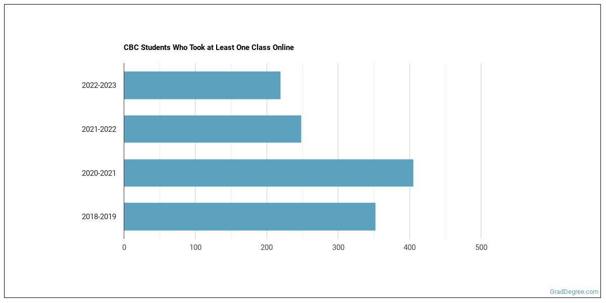 The following chart shows how the online learning population at CBC has changed over the last few years.