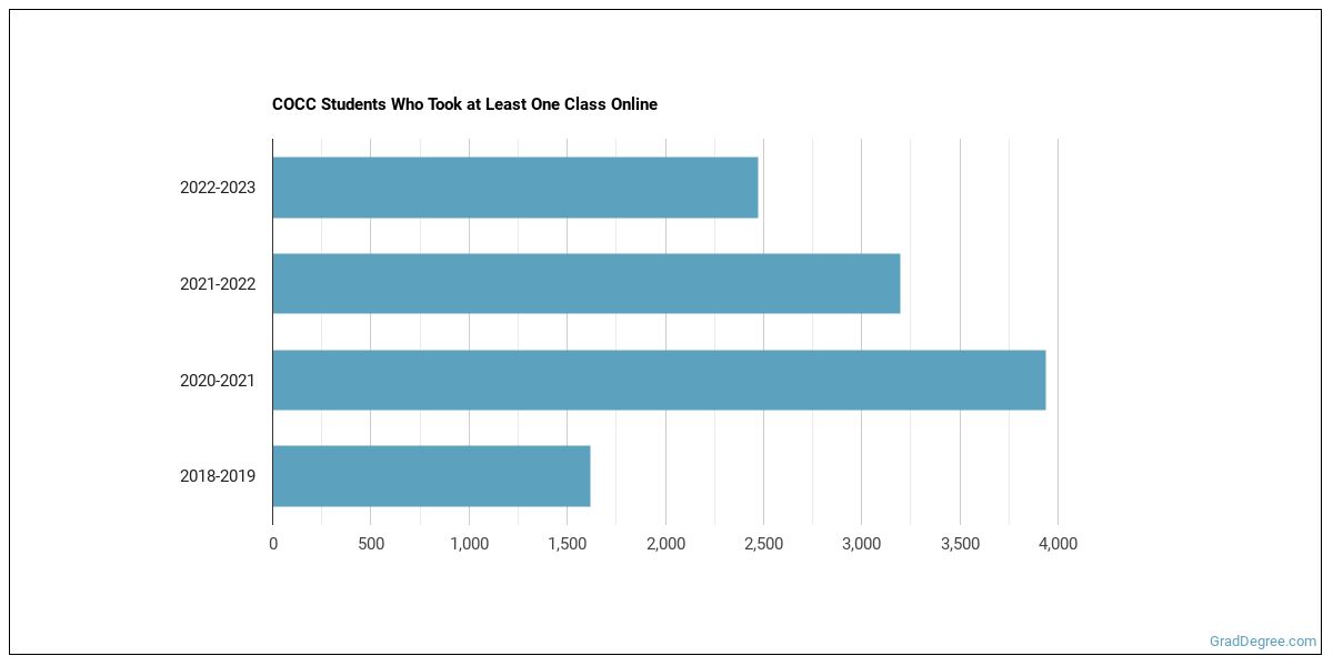 The following chart shows how the online learning population at COCC has changed over the last few years.