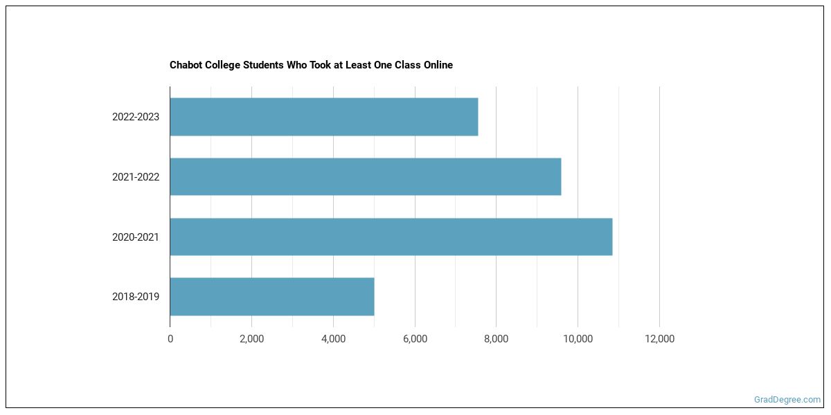 The following chart shows how the online learning population at Chabot College has changed over the last few years.