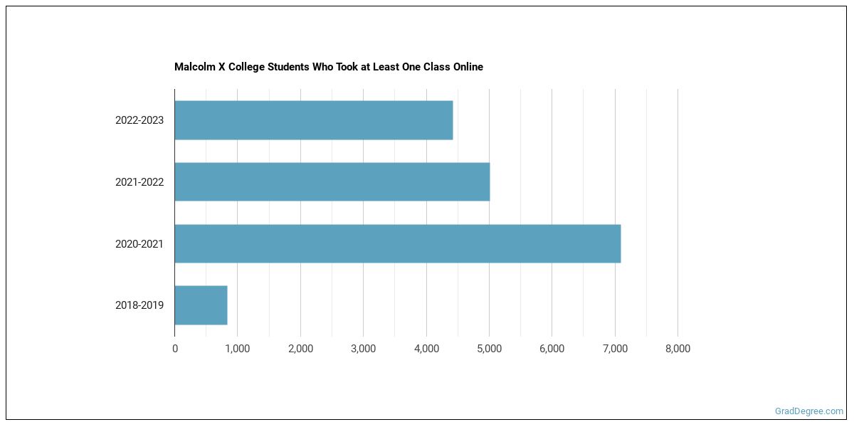 The following chart shows how the online learning population at Malcolm X College has changed over the last few years.