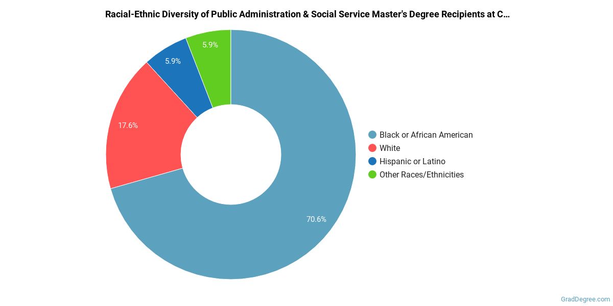 In the public administration and social service master's program at this school, racial-ethnic minorities make up 82% of degree recipients. That is 40% better than the national average.*