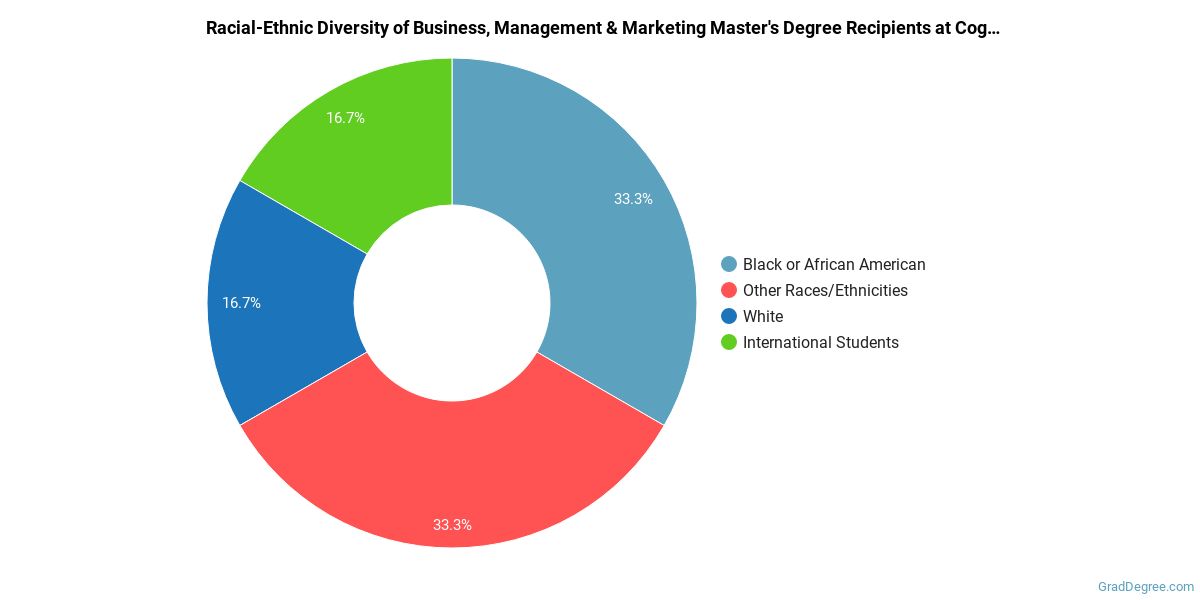 The following table and chart show the race/ethnicity for students who recently graduated from Cogswell College with a master's in business, management and marketing.