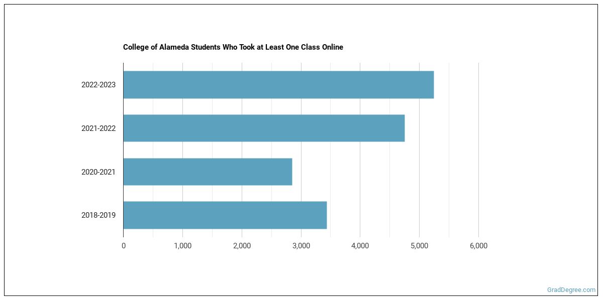 The following chart shows how the online learning population at College of Alameda has changed over the last few years.