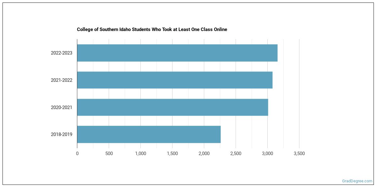 The following chart shows how the online learning population at College of Southern Idaho has changed over the last few years.