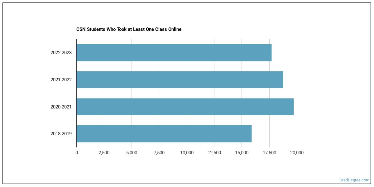 The following chart shows how the online learning population at CSN has changed over the last few years.