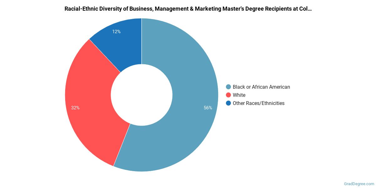 The following table and chart show the race/ethnicity for students who recently graduated from Columbia College with a master's in business, management and marketing.