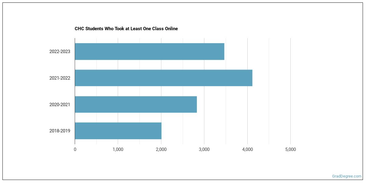 The following chart shows how the online learning population at CHC has changed over the last few years.