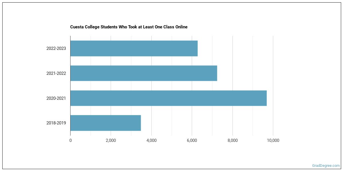 The following chart shows how the online learning population at Cuesta College has changed over the last few years.