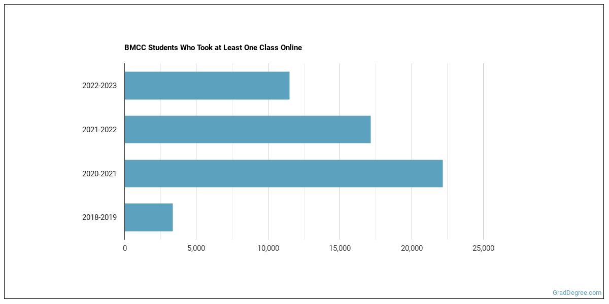 The following chart shows how the online learning population at BMCC has changed over the last few years.