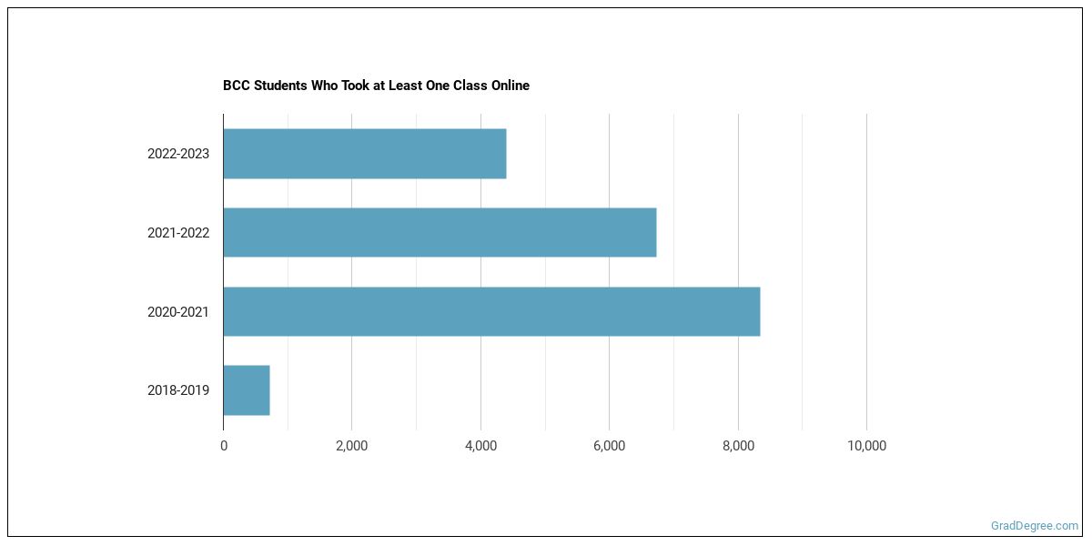 The following chart shows how the online learning population at BCC has changed over the last few years.