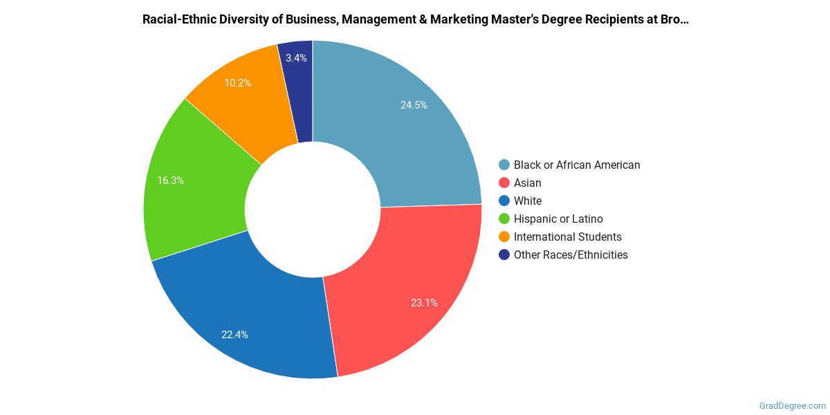 The following table and chart show the race/ethnicity for students who recently graduated from Brooklyn College with a master's in business, management and marketing.