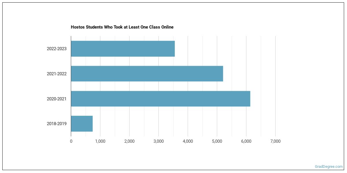 The following chart shows how the online learning population at Hostos has changed over the last few years.