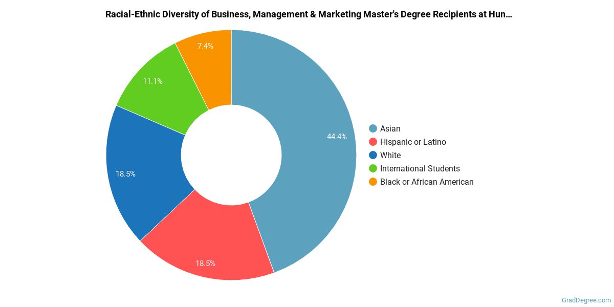 What traits are you looking for in a business, management and marketing school? To help you decide if Hunter College is right for you, we've gathered the following information about the school's business, management and marketing program.Hunter is located in New York, New York and has a total student population of 24,052. During the 2020-2021 academic year, 27 students received their master's degree in business, management and marketing.