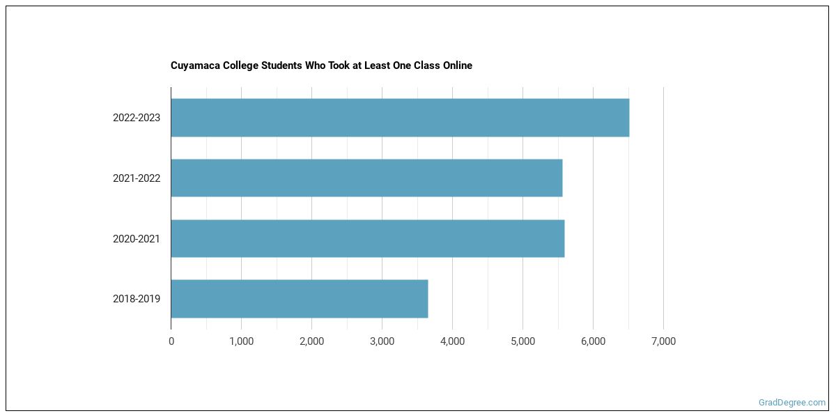 The following chart shows how the online learning population at Cuyamaca College has changed over the last few years.