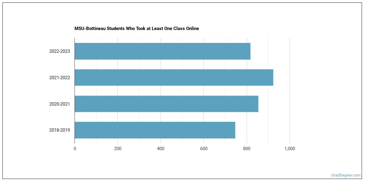 The following chart shows how the online learning population at MSU-Bottineau has changed over the last few years.