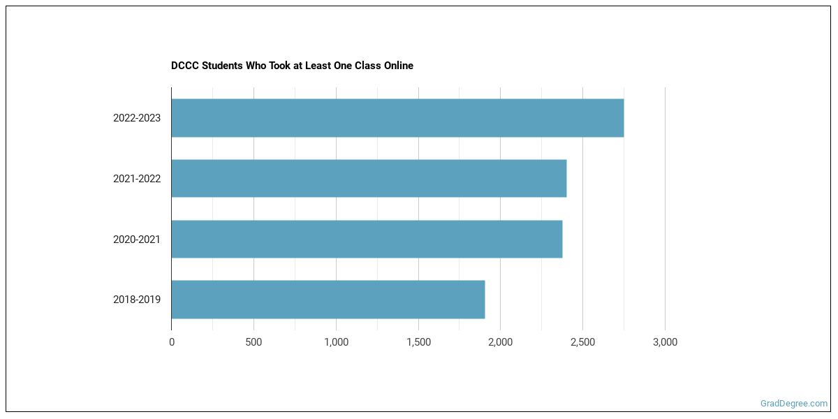 The following chart shows how the online learning population at DCCC has changed over the last few years.