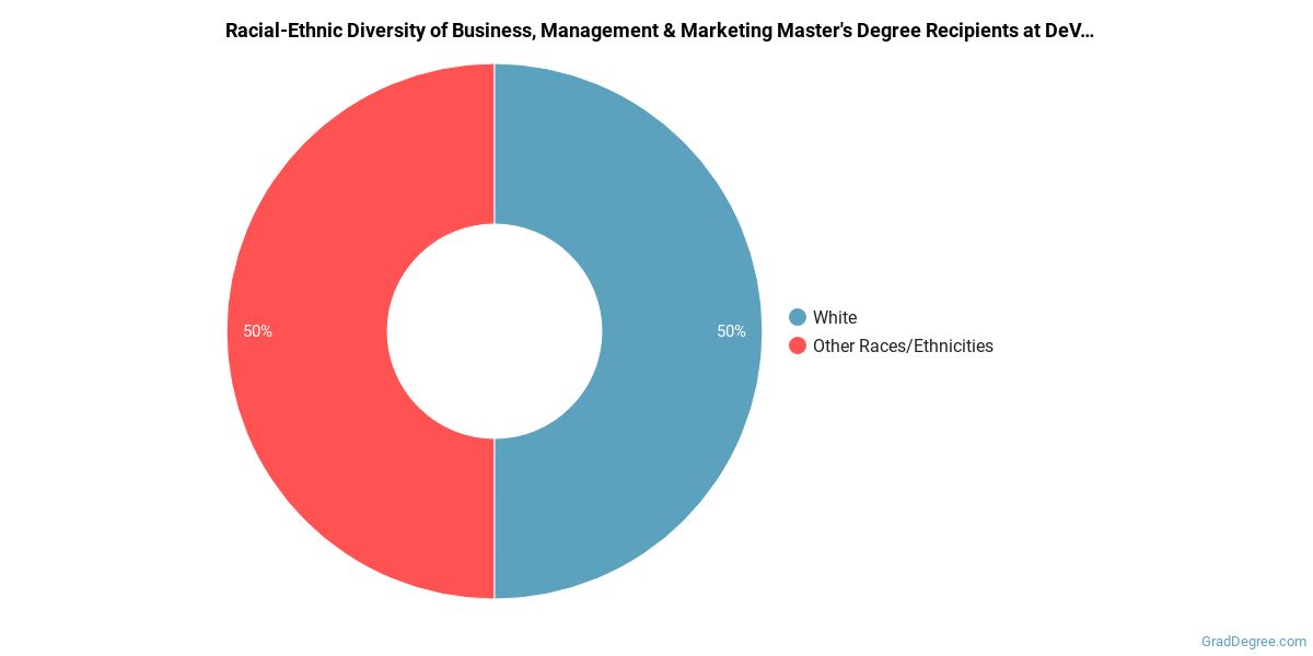 The following table and chart show the race/ethnicity for students who recently graduated from DeVry University - Indiana with a master's in business, management and marketing.