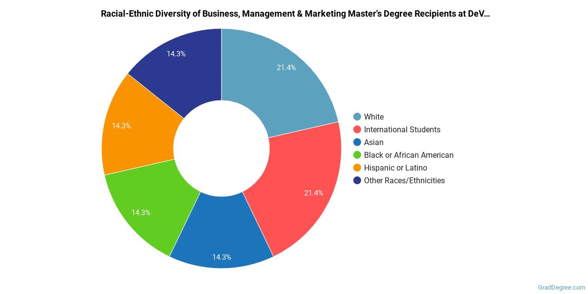 The following table and chart show the race/ethnicity for students who recently graduated from DeVry University - New Jersey with a master's in business, management and marketing.