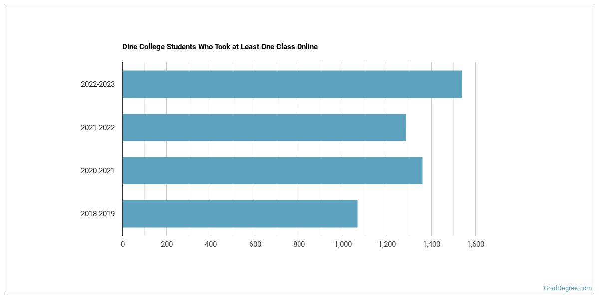 The following chart shows how the online learning population at Dine College has changed over the last few years.