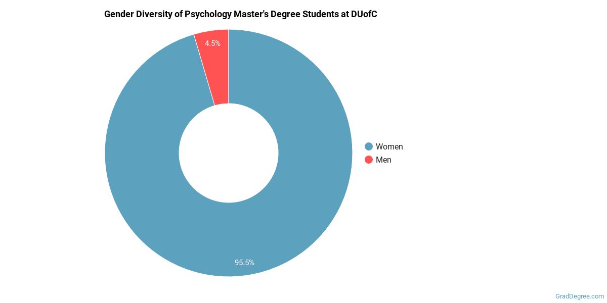 Of the students who received a psychology master's degree from DUofC, 77% were white. This is above average for this degree on the natiowide level.