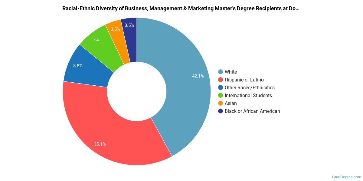 The following table and chart show the race/ethnicity for students who recently graduated from Dominican University with a master's in business, management and marketing.