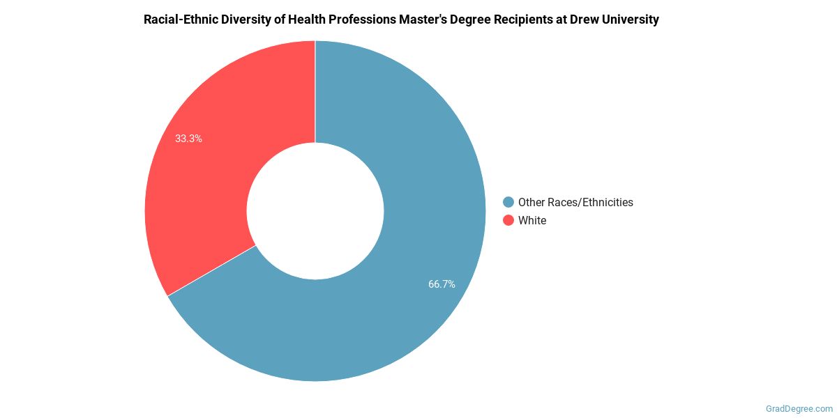 The following table and chart show the race/ethnicity for students who recently graduated from Drew University with a master's in health professions.