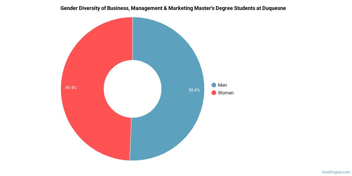 Of the students who received a business, management and marketing master's degree from Duquesne, 78% were white. This is above average for this degree on the natiowide level.