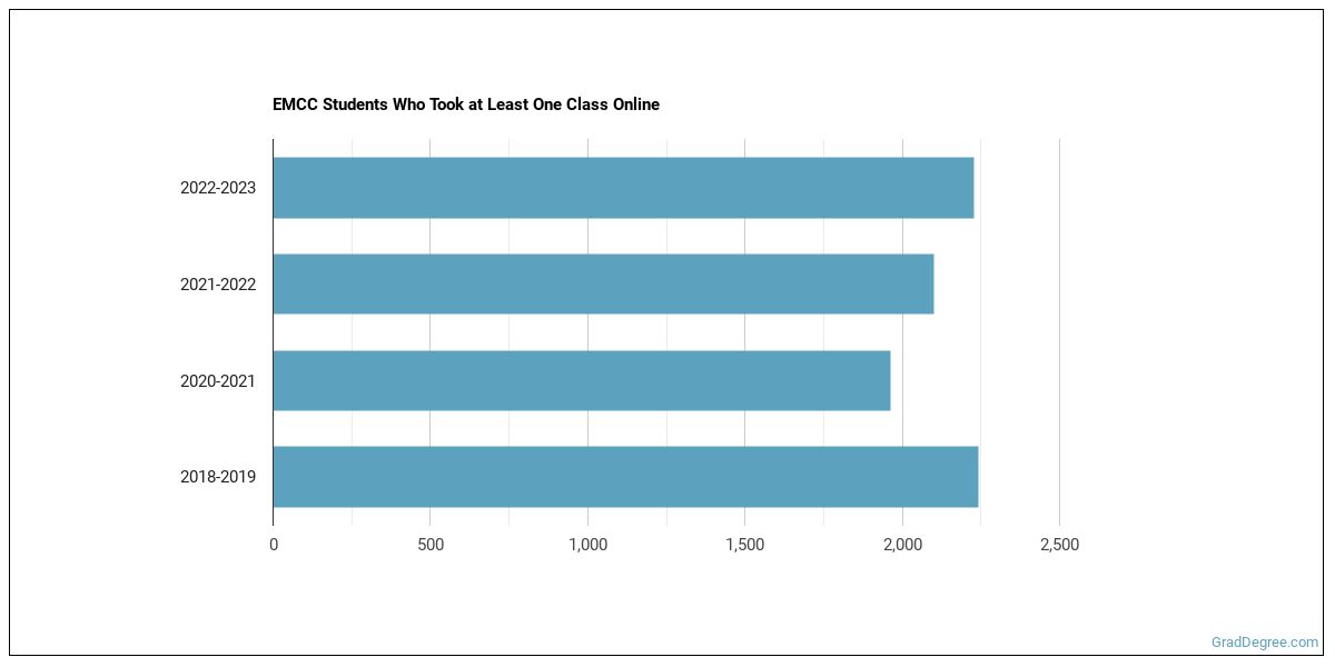 The following chart shows how the online learning population at EMCC has changed over the last few years.