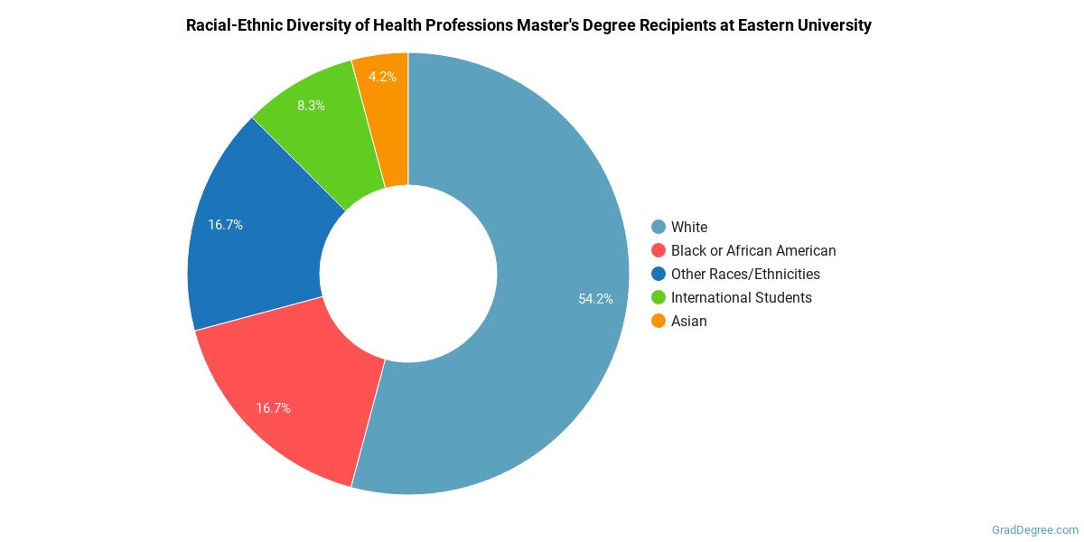Of the students who received a health professions master's degree from EU, 54% were white. This is typical for this degree on the natiowide level.
