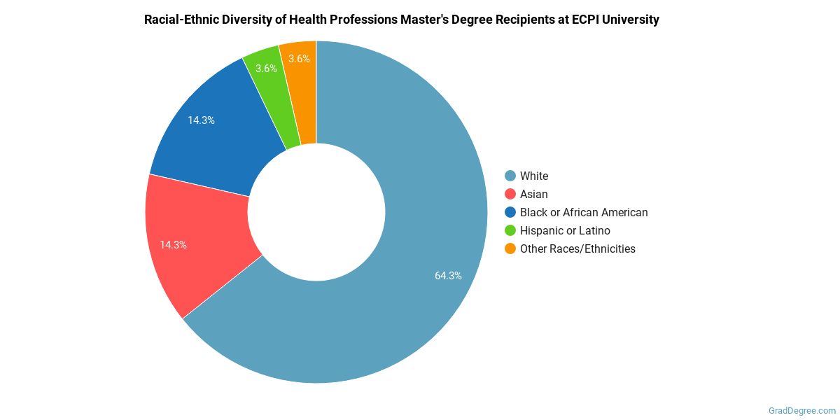Of the students who received a health professions master's degree from ECPI University, 64% were white. This is above average for this degree on the natiowide level.