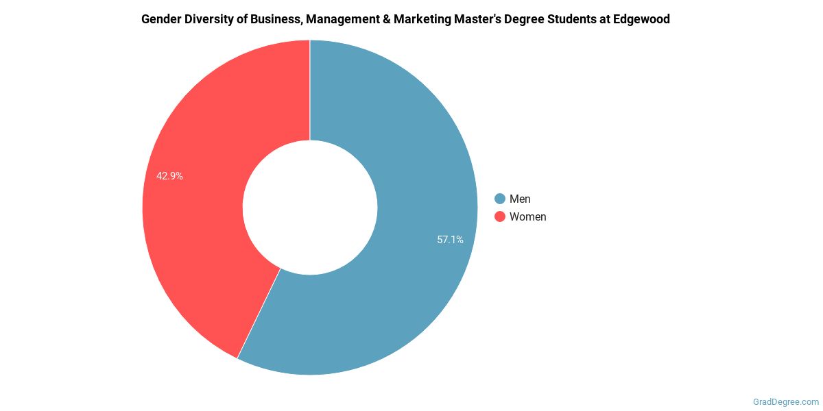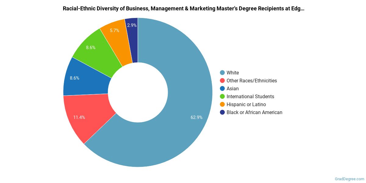 Of the students who received a business, management and marketing master's degree from Edgewood, 63% were white. This is above average for this degree on the natiowide level.