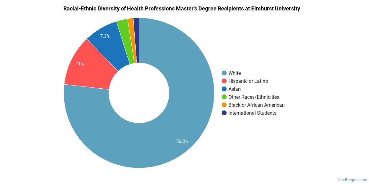 Of the students who received a health professions master's degree from Elmhurst, 77% were white. This is above average for this degree on the natiowide level.