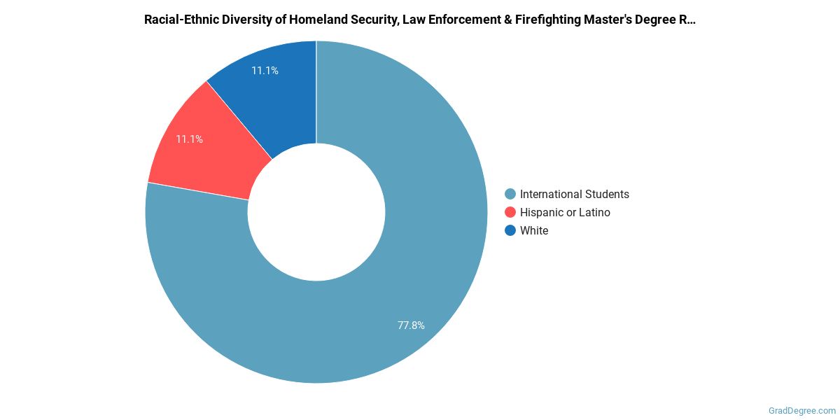 The following table and chart show the race/ethnicity for students who recently graduated from Embry-Riddle Aeronautical University - Daytona Beach with a master's in homeland security, law enforcement and firefighting.