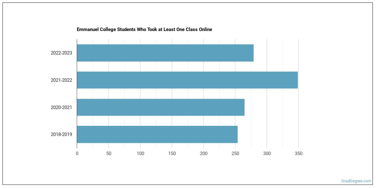 The following chart shows how the online learning population at Emmanuel College has changed over the last few years.