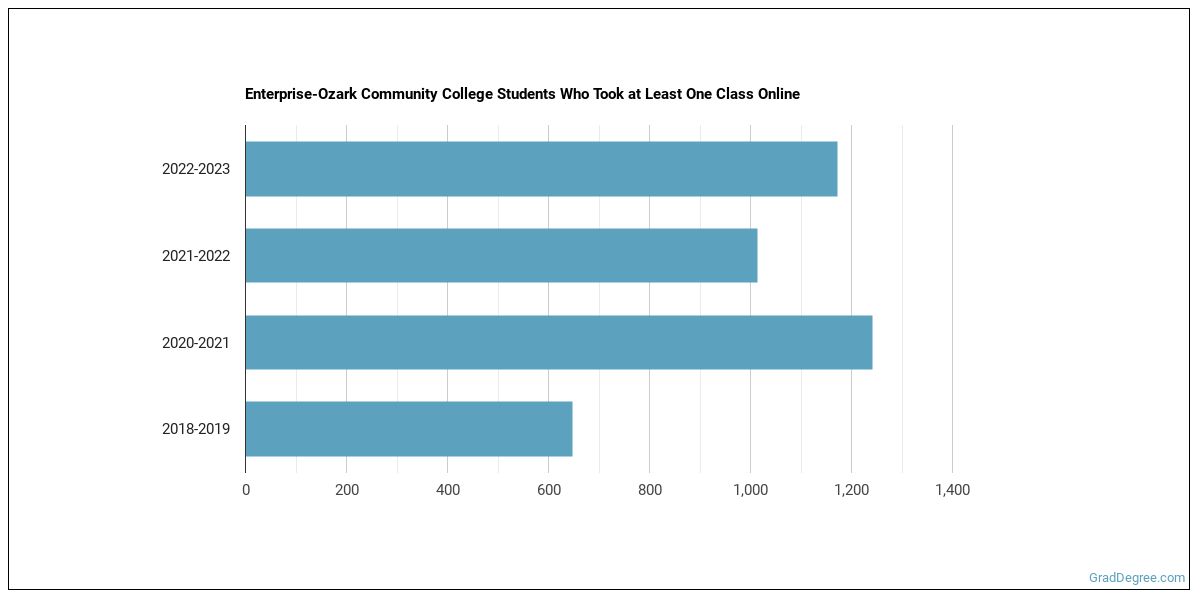 The following chart shows how the online learning population at Enterprise-Ozark Community College has changed over the last few years.