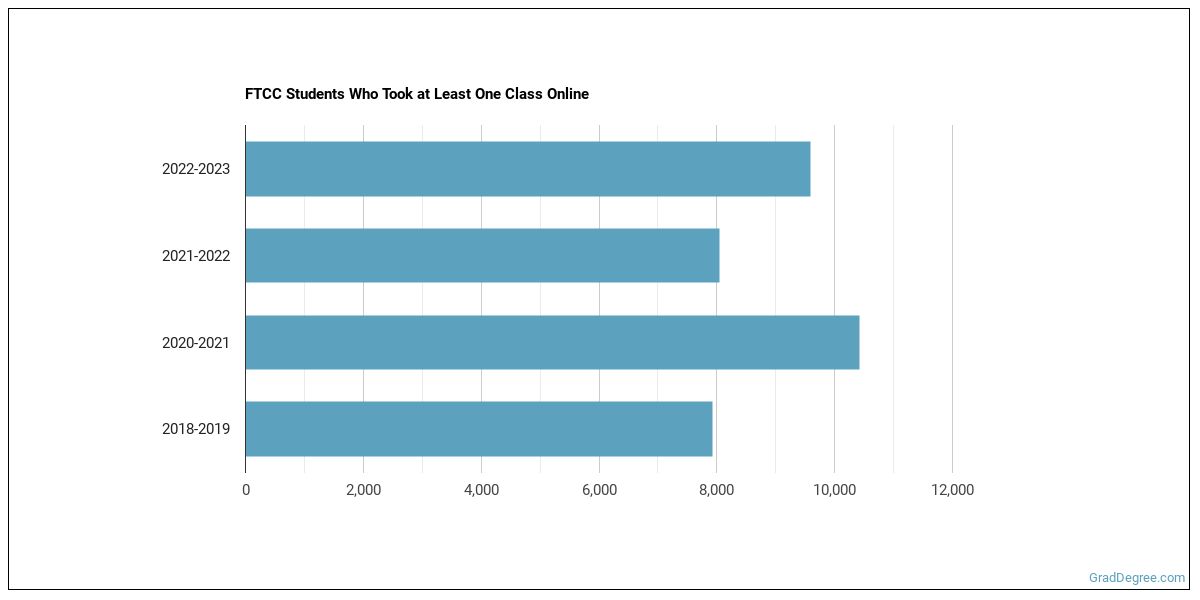 The following chart shows how the online learning population at FTCC has changed over the last few years.