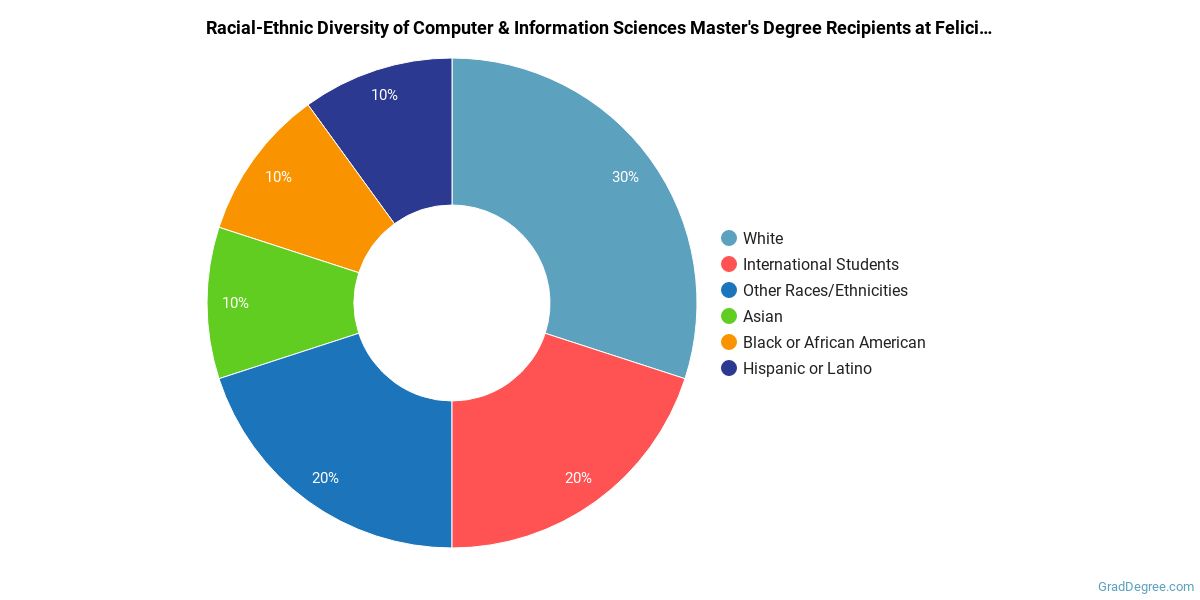The following table and chart show the race/ethnicity for students who recently graduated from Felician University with a master's in computer and information sciences.