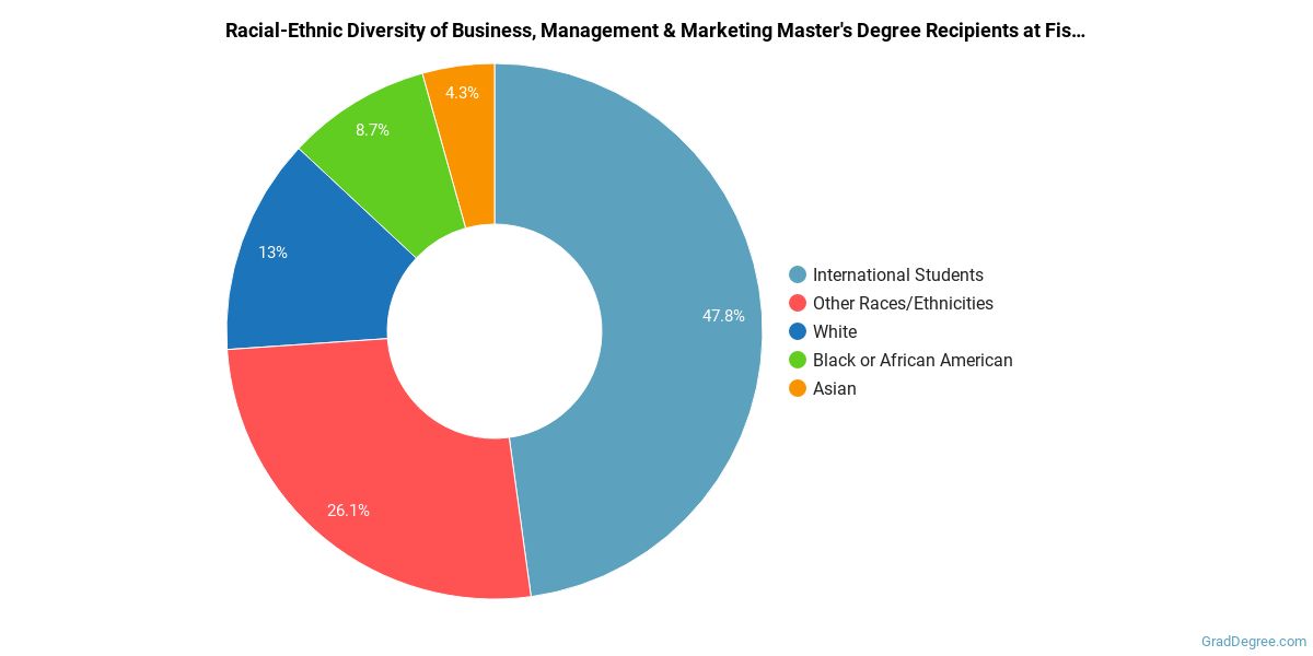 The following table and chart show the race/ethnicity for students who recently graduated from Fisher College with a master's in business, management and marketing.