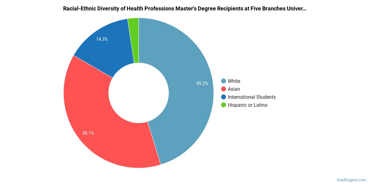 The following table and chart show the race/ethnicity for students who recently graduated from Five Branches University with a master's in health professions.