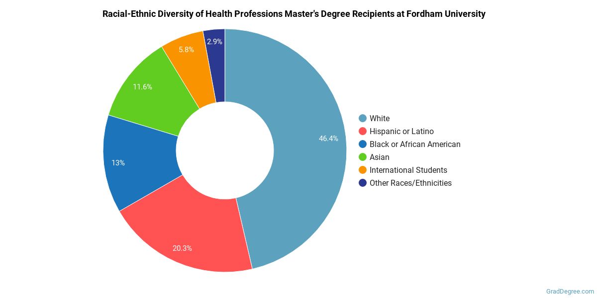 The following table and chart show the race/ethnicity for students who recently graduated from Fordham University with a master's in health professions.