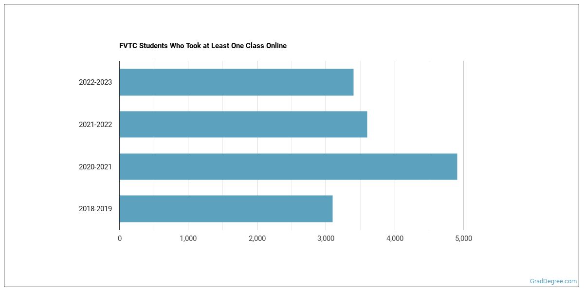 The following chart shows how the online learning population at FVTC has changed over the last few years.